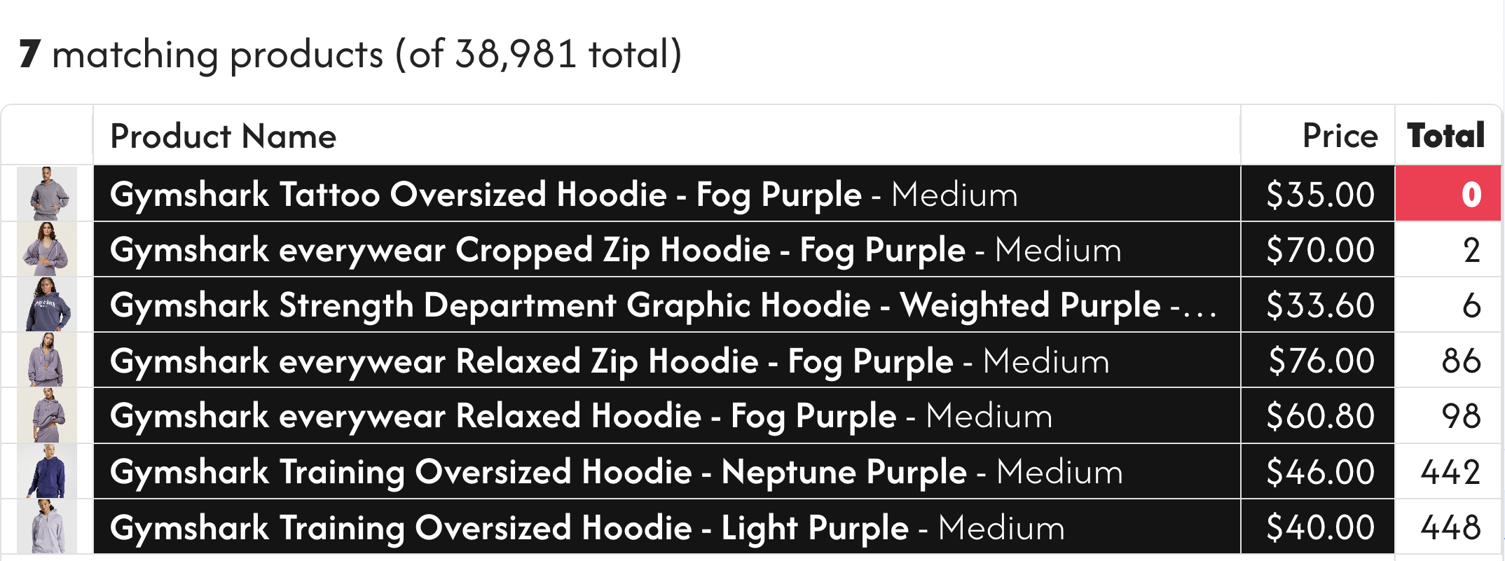 Hoodies (Out of Stock + Low Stock) — Which hoodies need immediate attention?